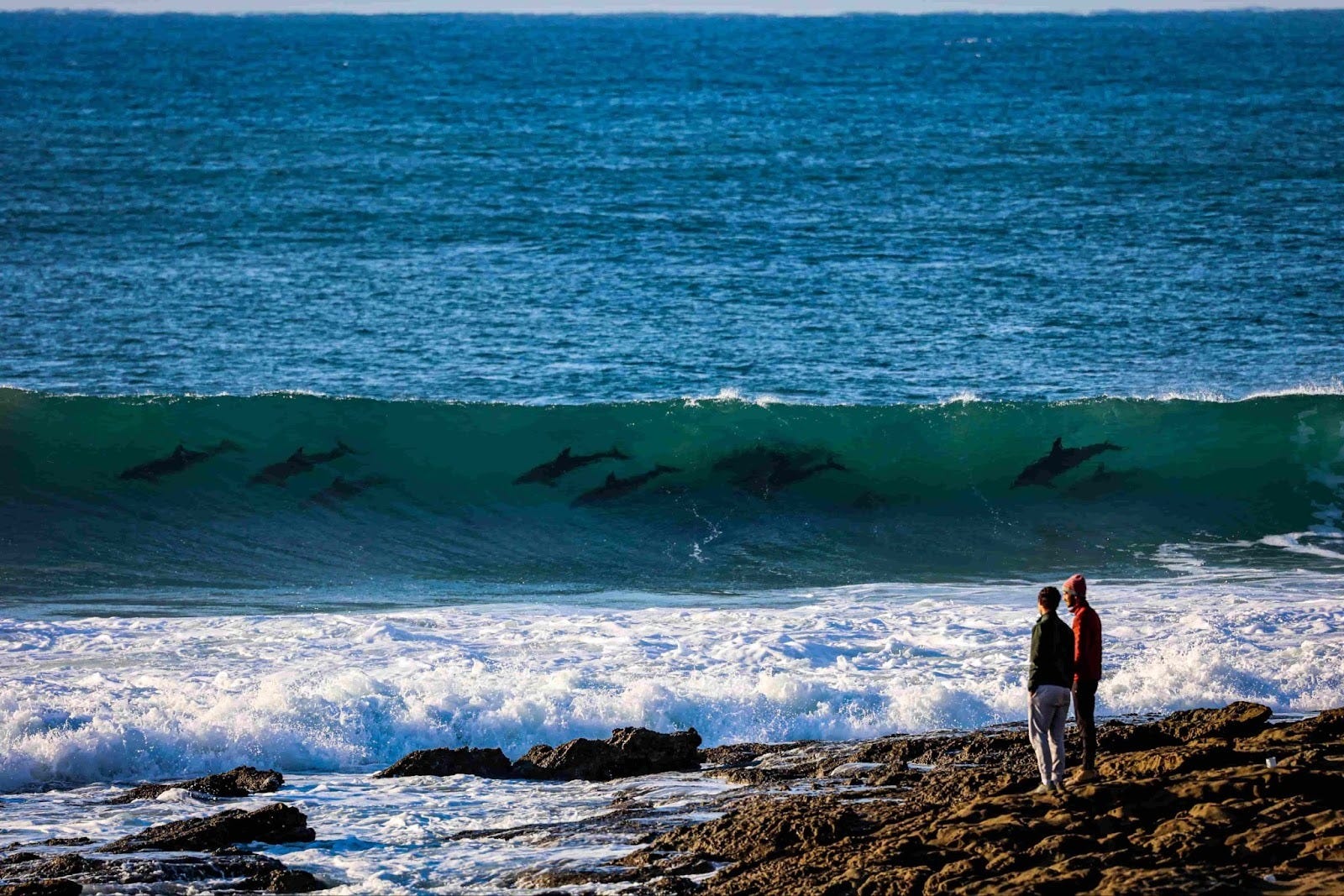 Almost like clockwork, in the morning and evening, the water is usually teeming with pods of dolphins. Then there’s the long, tapered waves.